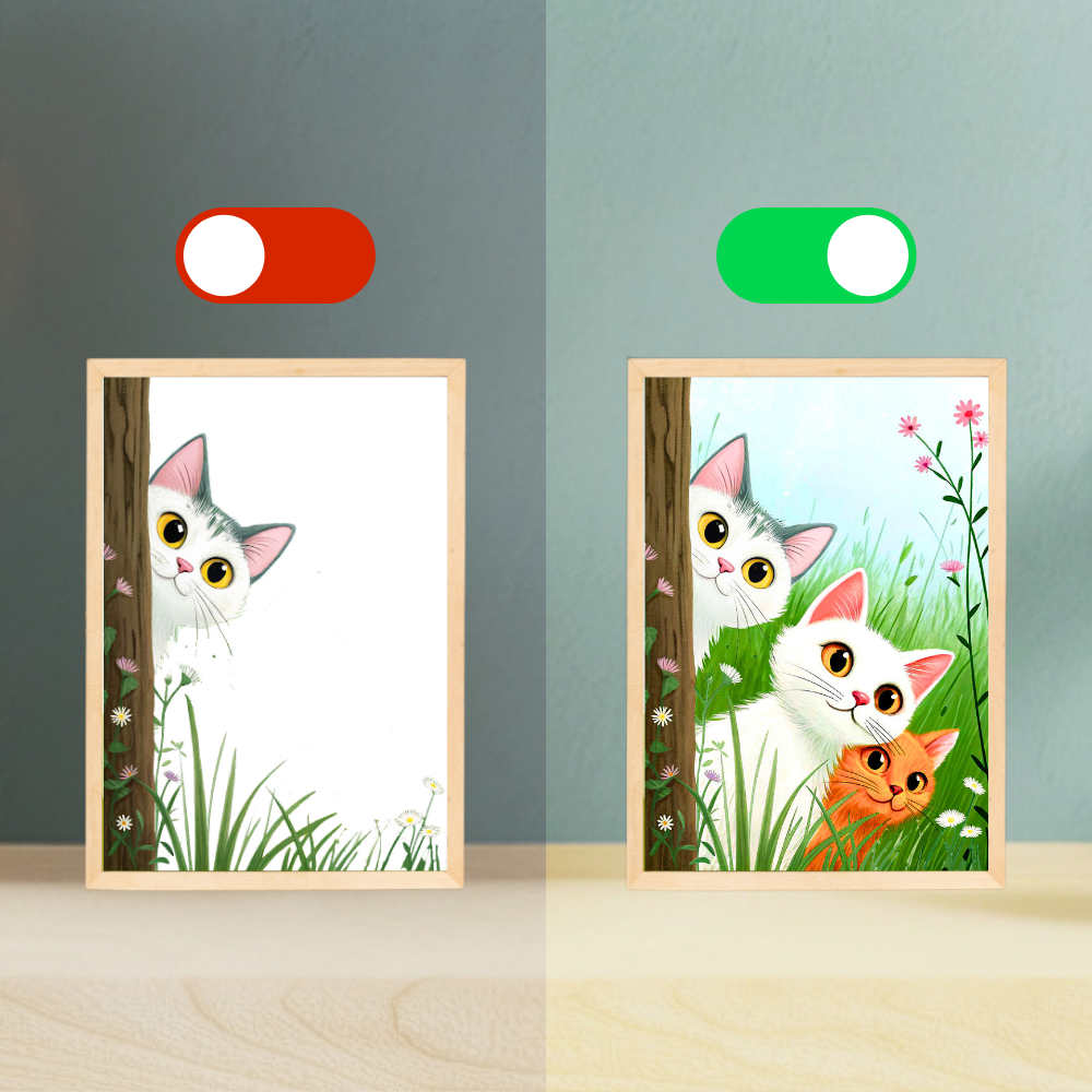 Tablonun ışığı kapalıyken sadece bir parçası görünen çizim, ışık açıldığında tamamlanıyor. Her detay, her renk ışıkla canlanıyor… Senin için özel olarak üretilmiş koleksiyon tasarımlarımızla sanat, her açılışta yeniden hayat buluyor.
